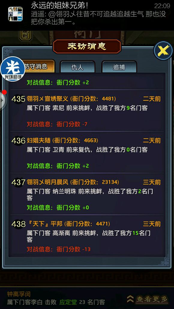 保持排名,当你的衙门分数已经很满意时(此时有人对你的排名虎视眈眈时)合理安排挑战时间,白天正常出使最多打你对手19个门客,防止上榜被人当靶子,在衙门榜刷新前的一段时间使用挑战书,12点会刷新榜单。如果你在这之前不上榜,只有追杀令能打到你。